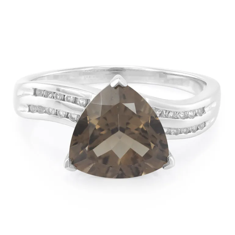 Entdecken Sie den bezaubernden Charme dieses brasilianischen Rauchquarzrings mit einem atemberaubenden 2,7-karätigen Trillantschliff in der Mitte. In 925er Sterlingsilber gefasst, werden die warmen Farbtöne des Quarzes durch das Funkeln von 20 weißen Topasen von insgesamt 0,103 Karat wunderbar ergänzt. Jeder weiße Topas ist präzise geschliffen, um seine Brillanz zu maximieren und einen auffälligen Kontrast zu dem rauchigen Edelstein zu schaffen. Mit seinem eleganten Design und vielseitigen Stil eignet sich dieser Ring sowohl für den Alltag als auch für eine raffinierte Abendgarderobe.