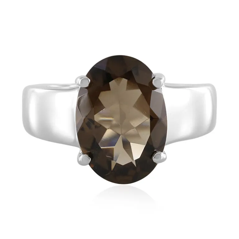 Dieser prächtige Ring präsentiert einen atemberaubenden brasilianischen Rauchquarz im Ovalschliff mit einem Gewicht von 4,49 Karat als Herzstück. Präzise facettiert, um seinen tiefen, verführerischen Farbton zu betonen, sitzt der Edelstein in einem eleganten 925er Sterlingsilberband, das für zusätzlichen Glanz und Haltbarkeit plattiert ist. Dieser Ring eignet sich sowohl für den Tag als auch für die Nacht und verleiht einem maßgeschneiderten Geschäftsanzug oder einem eleganten Abendkleid einen Hauch von Klasse, indem er mit seinem zeitlosen Design den geschmackvollen Stil der Trägerin unterstreicht.