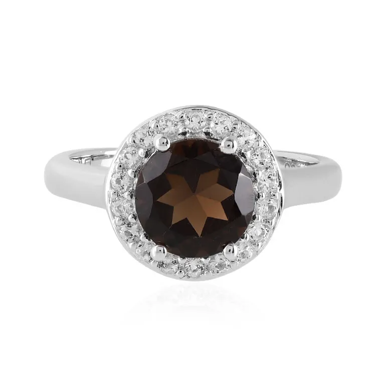Brasilianischer Rauchquarz & Weißer Topas Silberring, 1,836 ct
