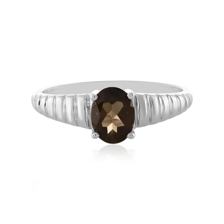 Entdecken Sie die Anziehungskraft dieses schicken Rings aus 925er Sterlingsilber mit einem fesselnden brasilianischen Rauchquarz. Mit seinem satten, durchscheinenden Braunton und dem ovalen Schliff strahlt dieser Edelstein mit einem Gewicht von 0,988 Karat eine erdige Eleganz aus. Die Raffinesse der Silberarbeit verleiht dem klassischen Design eine moderne Note und macht ihn zu einer vielseitigen Ergänzung für jedes Ensemble. Ob zum Ausgehen oder für den Alltag – dieser Ring ist ein müheloses Stil-Statement.