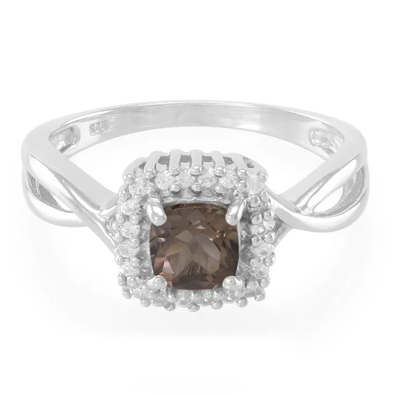 Entdecken Sie die Anziehungskraft des Sophisticated Smoky Quartz Silver Ring. Der 0,49 ct antike Rauchquarz im Kissenschliff aus Brasilien bildet das Herzstück, umgeben von 20 brillanten Zirkonen im Rundschliff aus Kambodscha, die ihm Glanz und Eleganz verleihen. Der Ring ist aus 925er Sterlingsilber gefertigt und hat einen strahlenden Charme. Perfekt für besondere Anlässe oder um jedem Outfit einen Hauch von Eleganz zu verleihen.