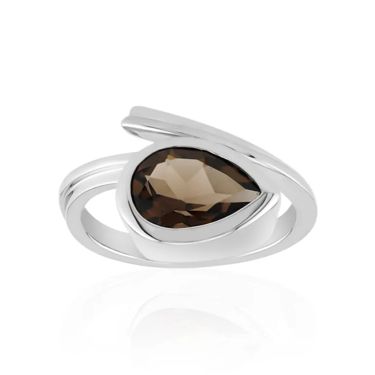 Brasilianischer Rauchquarz Tropfen Silberring, 1,663ct