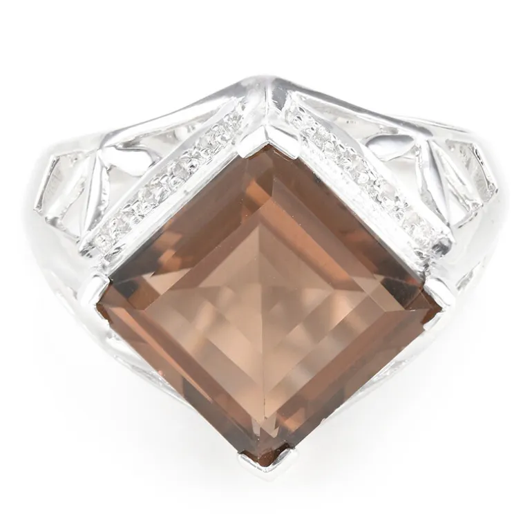 Entdecken Sie die Anziehungskraft unseres Rings aus brasilianischem Rauchquarz mit einem atemberaubenden 5,43-Karat-Mittelstück im schicken Carré-Schliff, umrahmt von glänzendem 925er Sterling Silber. Der 11 mm große Rauchquarz wird durch 16 funkelnde weiße Topase elegant ergänzt und verleiht ihm einen Hauch von Brillanz. Mit einem Gewicht von ca. 3,26 g ist dieser exquisite Ring ein wahres Zeugnis feiner Handwerkskunst. Er eignet sich perfekt für Abendveranstaltungen oder für einen auffälligen Auftritt im Beruf und lässt sich nahtlos mit Ihren Lieblingsoutfits kombinieren.