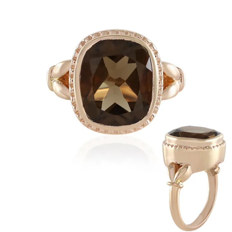 Entdecken Sie die zeitlose Eleganz dieses Rings aus brasilianischem Rauchquarz mit einem exquisiten Edelstein von 4,23 Karat im Antikschliff, gefasst in glänzendem, rosévergoldetem 925er Sterling Silber. Seine satten Schokoladentöne und sein klassisches Design machen ihn perfekt, um sowohl der Freizeit- als auch der Gesellschaftskleidung einen Hauch von Raffinesse zu verleihen. Dieser Ring ist eine feine Ergänzung für jede Schmucksammlung und zelebriert die natürliche Schönheit des Quarzes in einer modernen Fassung.