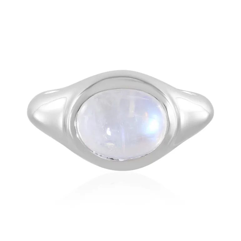 Indischer Regenbogen Mondstein Oval Ring, Plat. Sterling Silber