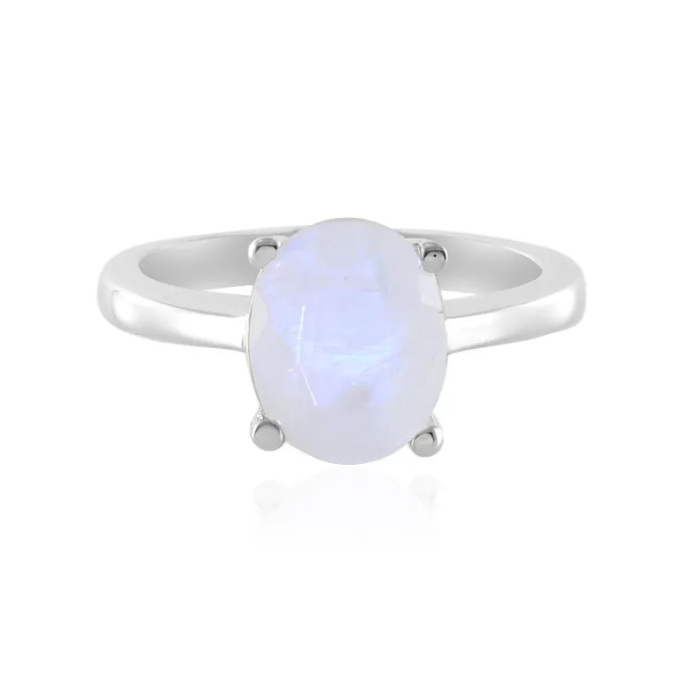 Indischer Regenbogen-Mondstein Platinbeschichteter Silberring, 2,28ct