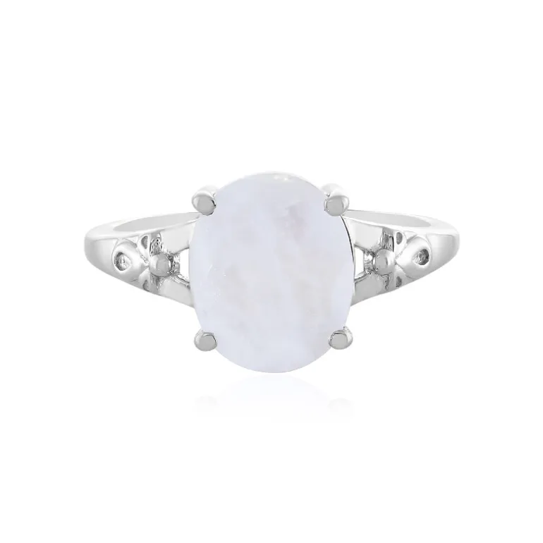 Entdecken Sie die himmlische Schönheit dieses Rings aus platiniertem Sterlingsilber mit einem fesselnden indischen Regenbogenmondstein. Der oval geschliffene Edelstein mit einem Gewicht von 3,197 Karat und einer Größe von ca. 11 x 9 mm fängt das bezaubernde Spiel von Licht und Farbe ein, für das der Mondstein bekannt ist. Mit seinem subtilen Schimmer passt dieser Ring sowohl zu legerer als auch zu formeller Kleidung und ist damit eine vielseitige Ergänzung für jede Schmucksammlung. Er ist perfekt für alle, die einen Hauch von Mystik in ihren Accessoires zu schätzen wissen, und verspricht, bei jeder gesellschaftlichen Zusammenkunft für Gesprächsstoff zu sorgen.