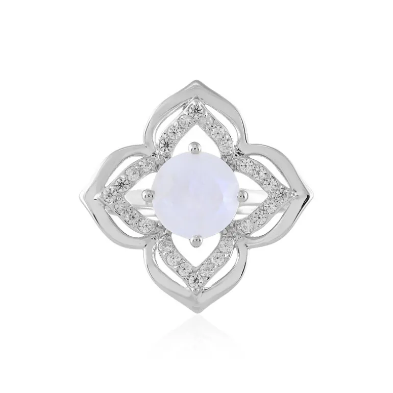 Indischer Regenbogen Mondstein Sterling Silber Ring, 1,9 ct