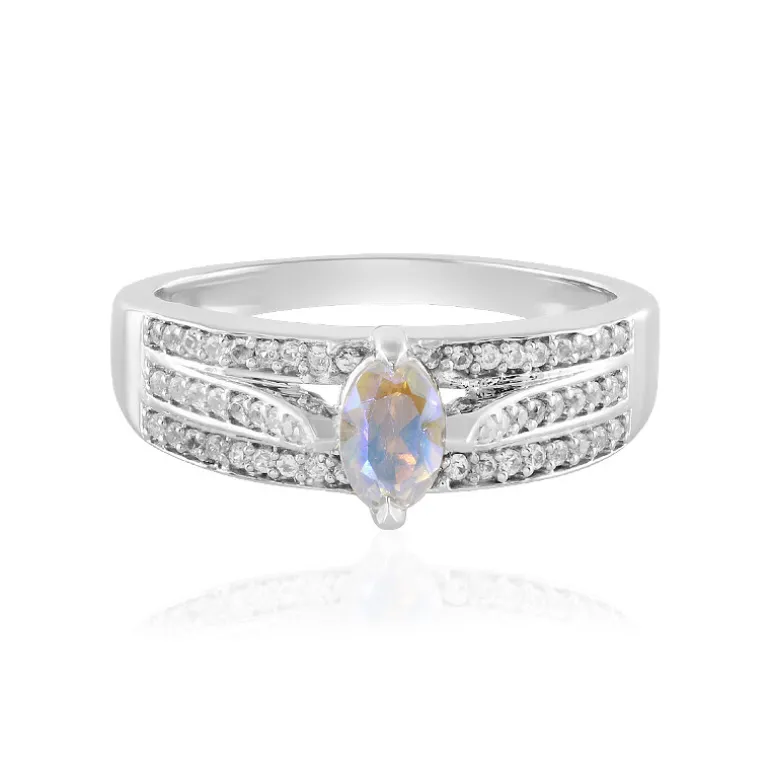 Entdecken Sie die schillernde Anziehungskraft dieses atemberaubenden Rings aus 925er Sterlingsilber, gekrönt von einem fesselnden brasilianischen Regenbogentopas im Ovalschliff von 0,461 Karat. Der schimmernde Edelstein wird durch 52 strahlende kambodschanische Zirkonsteine von insgesamt 0,373 Karat ergänzt, die dem Ring einen exquisiten Glanz verleihen. Die Platinplattierung verstärkt seinen Glanz und macht ihn zu einer unverwüstlichen Ergänzung Ihrer Kollektion. Er ist ideal, um jedem Outfit einen Hauch von Eleganz zu verleihen, und eignet sich sowohl für einen legeren Brunch als auch für formelle Anlässe.
