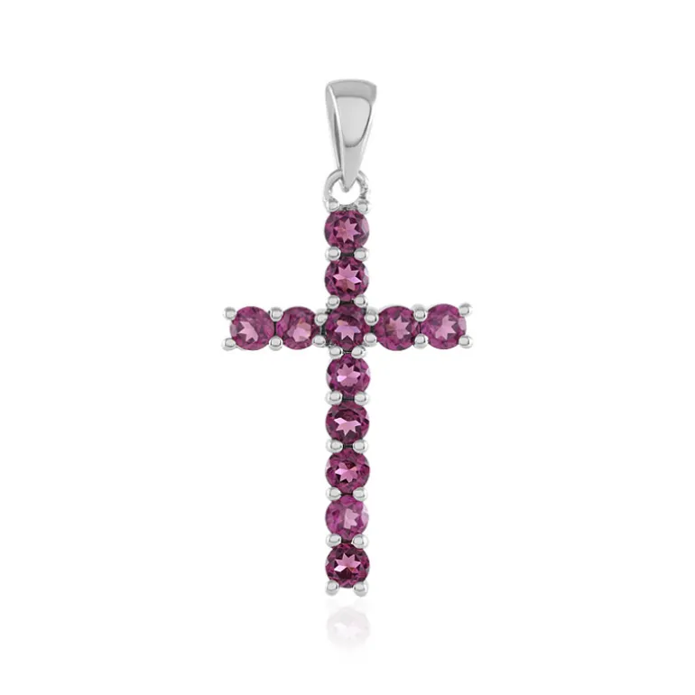 Enthüllen Sie Eleganz mit diesem exquisiten Kreuzanhänger aus Rhodolith-Silber. Mit 12 Rhodolithen im Rundschliff, von denen jeder in einem bezaubernden Farbton schimmert, verkörpert dieses Stück Raffinesse. Er ist aus platiniertem 925er Sterlingsilber gefertigt und eignet sich sowohl für den Alltag als auch für besondere Anlässe. Kombinieren Sie ihn mit einer schlichten Bluse für lässigen Charme oder mit einem schwarzen Kleid für einen atemberaubenden Auftritt am Abend.