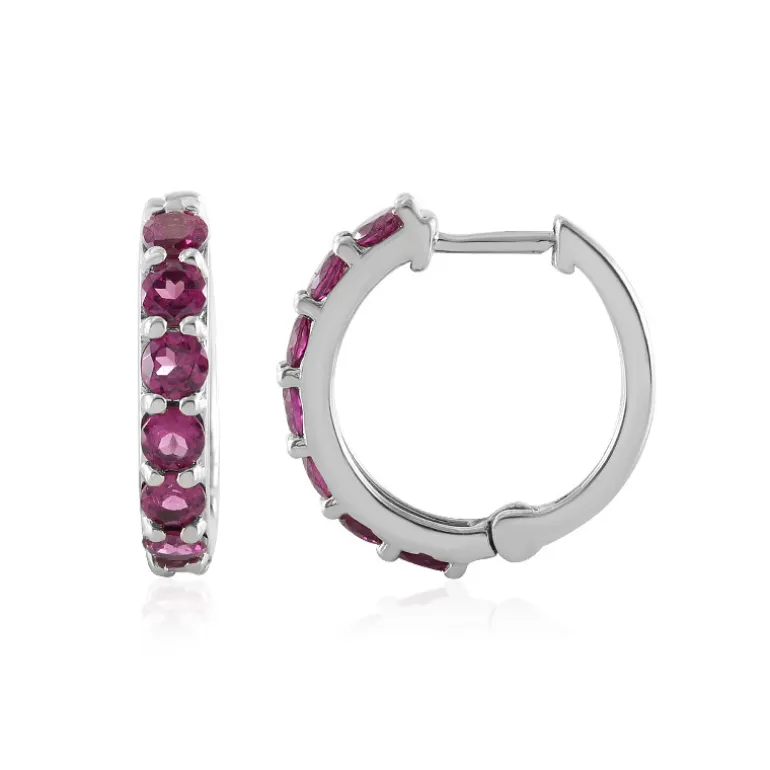 Entdecken Sie die Faszination unserer indischen Rhodolith-Ohrringe mit 1,812 Karat dieses geschätzten Edelsteins. Die Ohrringe aus platiniertem 925er Sterling Silber verleihen dem Schmuckstück einen Hauch von Luxus und präsentieren die leuchtenden Farben von 14 Rhodolithen im Rundschliff in einem Design, das zeitlose Eleganz ausstrahlt. Mit einer perfekten Größe von 19 mm eignen sie sich sowohl für zwanglose Ausflüge als auch für anspruchsvolle Anlässe. Kombinieren Sie sie mit einem klassischen Kleid für einen stilvoll abgestimmten Look.