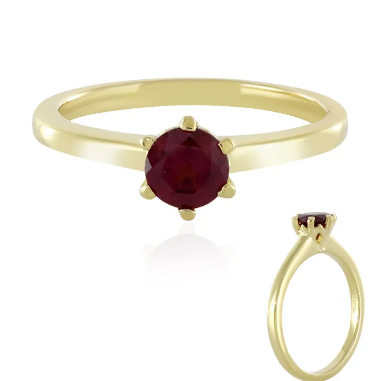 Dieser Ring aus vergoldetem 925er Sterlingsilber ist mit einem 0,691 Karat großen indischen Rhodolith im Rundschliff verziert und strahlt Eleganz aus. Der tiefrote Edelstein wird sicher in einer klassischen Fassung gehalten, die die warmen Töne der Goldplattierung wunderbar ergänzt. Mit einem Gesamtgewicht von 0,691 ct ist dieser Ring ein dezentes und doch auffälliges Statement. Er eignet sich sowohl für Freizeitkleidung als auch für besondere Anlässe und verleiht jedem Outfit einen Hauch von Raffinesse.