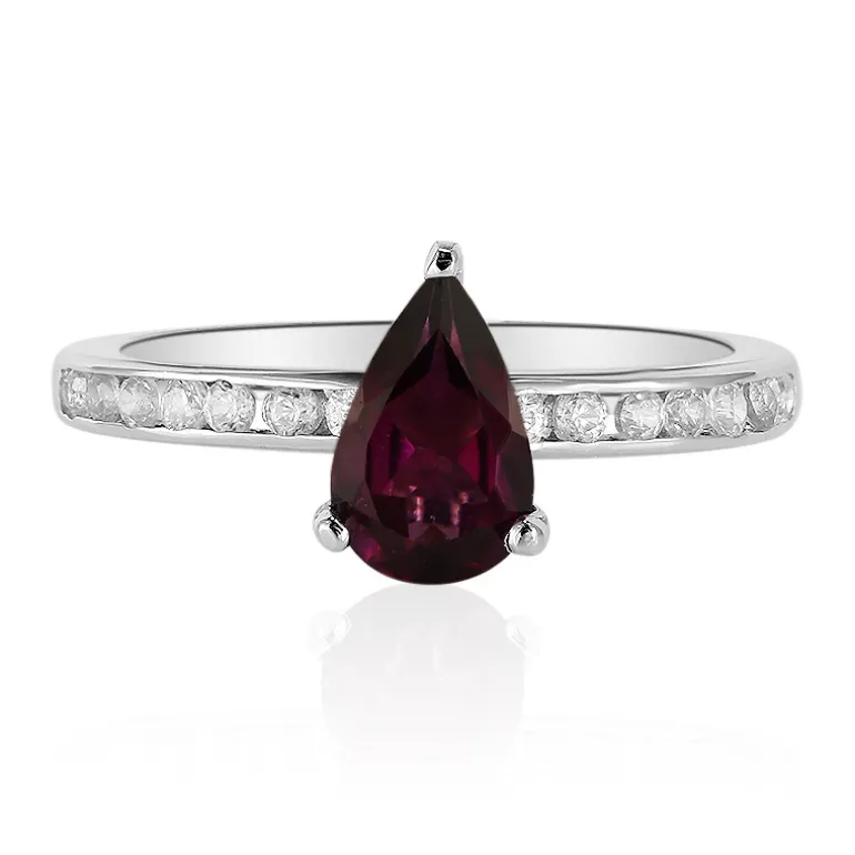 Entdecken Sie die Anziehungskraft dieses raffinierten Rings mit einem tansanischen Rhodolithen von 0,869 Karat im Birnenschliff, gefasst in glänzendem 925er Sterling Silber. Flankiert von funkelnden Zirkon-Akzenten von insgesamt 0,29 Karat, strahlt dieses Schmuckstück einen tiefen, lebendigen Farbton aus. Er eignet sich sowohl für Freizeitkleidung als auch für formelle Anlässe und ist eine vielseitige Ergänzung für jede Schmucksammlung. Seine schlichte Eleganz macht ihn zu einem zeitlosen Geschenk oder zu einem atemberaubenden Geschenk für Sie selbst.