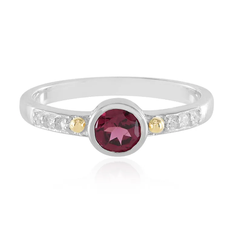 Schicker Rhodolith 925 Silber Ring, 14K Gold Akzente