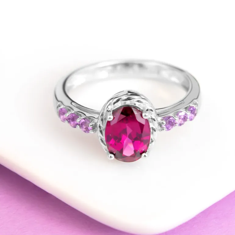 Entdecken Sie die Faszination kenianischer Edelsteine mit diesem bezaubernden Silberring. Ein Rift Valley Rhodolith im Ovalschliff von 1,318 Karat wird von einem Halo aus sechs brasilianischen Amethysten von insgesamt 0,153 Karat umrahmt. Dieses Schmuckstück aus 925er Sterlingsilber mit einem Gewicht von ca. 2,23 g vereint leuchtende violette Farbtöne in einem zeitlosen Stil. Er ist ideal, um Ihrem Outfit einen farbigen Akzent zu verleihen und wird bei jeder Veranstaltung für Gesprächsstoff sorgen.