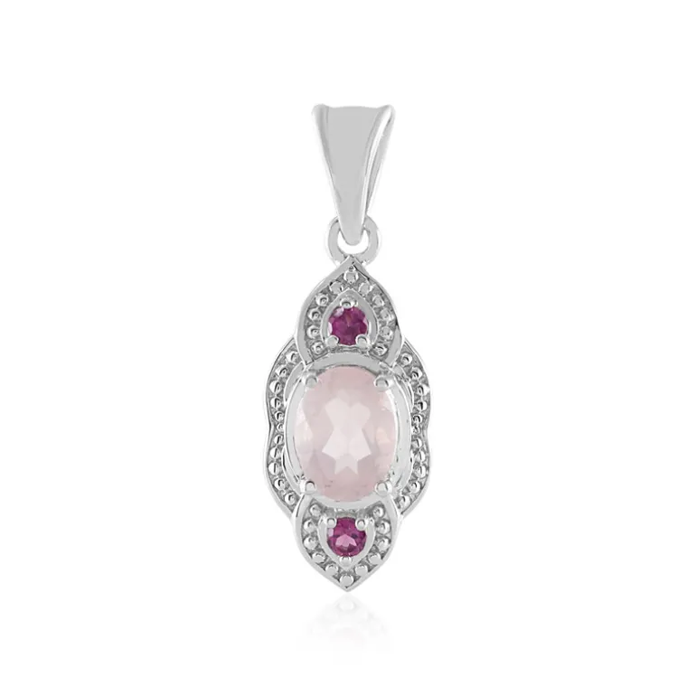 Brasilianischer Rosenquarz & Rhodolith Silberanhänger, 1,13ct