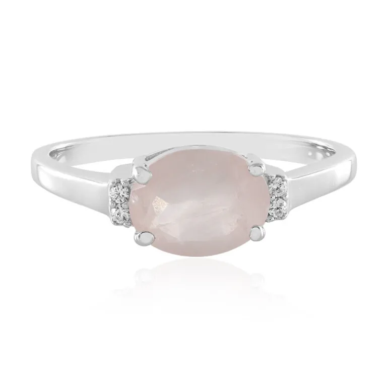 Indischer Rosenquarz & Zirkon Platinplattierter Silberring