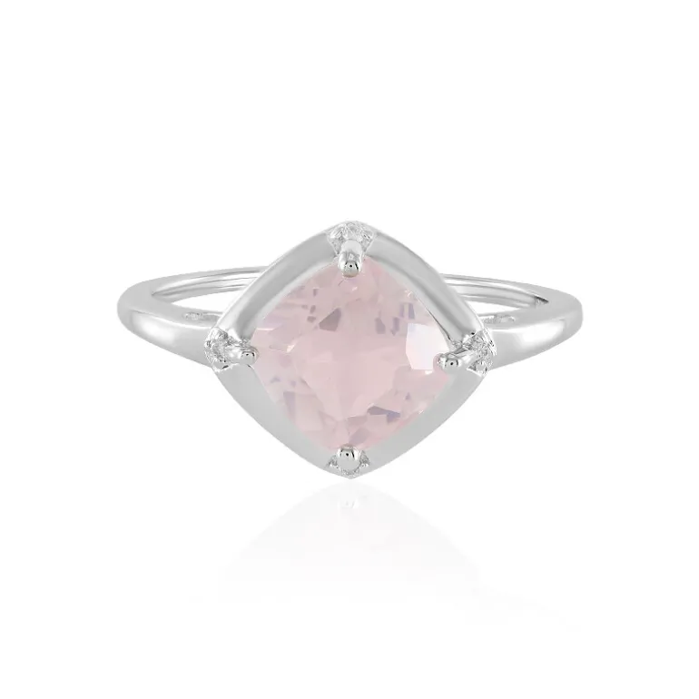 Brasilianischer Rosenquarz Cushion Silber Ring, 2,86ct