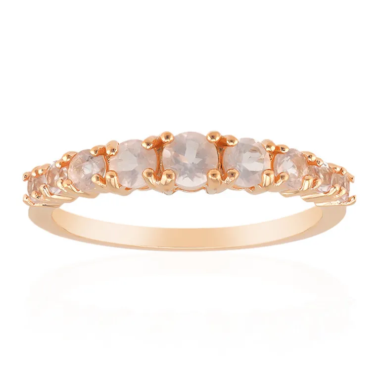 Schmücken Sie Ihre Hand mit dem bezaubernden Ring aus brasilianischem Rosenquarz, der aus 925er Sterlingsilber gefertigt und elegant rosévergoldet ist. Dieser bezaubernde Ring enthält insgesamt acht Rosenquarzsteine im Rundschliff mit einem Gesamtgewicht von 0,599 Karat. Er eignet sich sowohl für den eleganten Alltag als auch für besondere Anlässe und passt wunderbar zu zarten, pastellfarbenen Outfits oder verleiht gewagter Kleidung einen Hauch von Weiblichkeit.