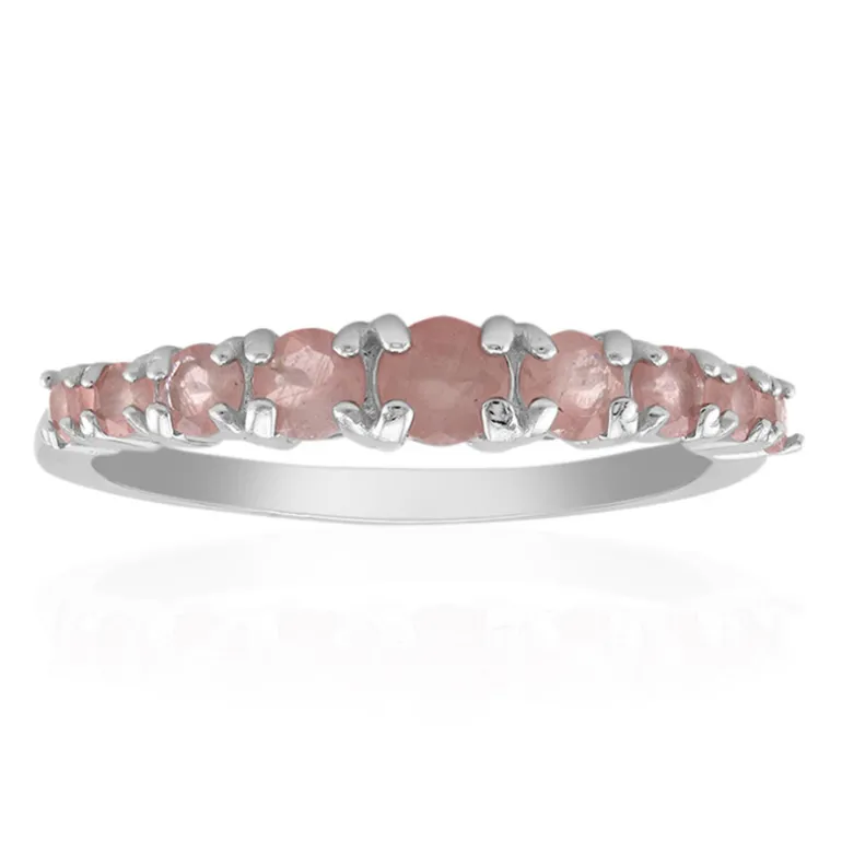 Erfreuen Sie sich an dem sanften Farbton dieses brasilianischen Rosenquarz-Sterlingsilberrings. Das aus 925er Sterlingsilber gefertigte Schmuckstück zeigt eine harmonische Anordnung von Rosenquarzen im Rundschliff mit insgesamt 0,599 Karat, die ein sanftes, romantisches Rosa ausstrahlen, das Wärme und Eleganz ausstrahlt. Die zarten Silberarbeiten ergänzen die Steine und sorgen für einen modernen und vielseitigen Look. Ob Sie sich für ein Date herausputzen oder Ihrer Alltagskleidung einen Hauch von Anmut verleihen, dieser Ring ist eine ausgezeichnete Wahl. Sein geringes Gewicht sorgt für Komfort, ohne Kompromisse beim Stil einzugehen, und macht ihn zu einer idealen Wahl für alle, die subtile Schönheit zu schätzen wissen.