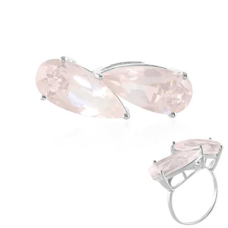 Dieser auffällige Ring präsentiert zwei brasilianische Rosenquarz-Edelsteine mit einem Gesamtgewicht von 7,31 Karat, gefasst in glänzendem 925er Sterling Silber. Jeder der Quarze mit seinem tropfenförmigen Schliff und dem zarten rosa Farbton erstreckt sich mit beeindruckenden 18×8 mm über den Finger. Der Ring selbst misst 28×27 mm und ist ein kühnes und doch anmutiges Schmuckstück. Dieser Ring eignet sich sowohl für formelle als auch für legere Anlässe und verspricht, jedem Outfit einen Hauch von Romantik und Raffinesse zu verleihen.
