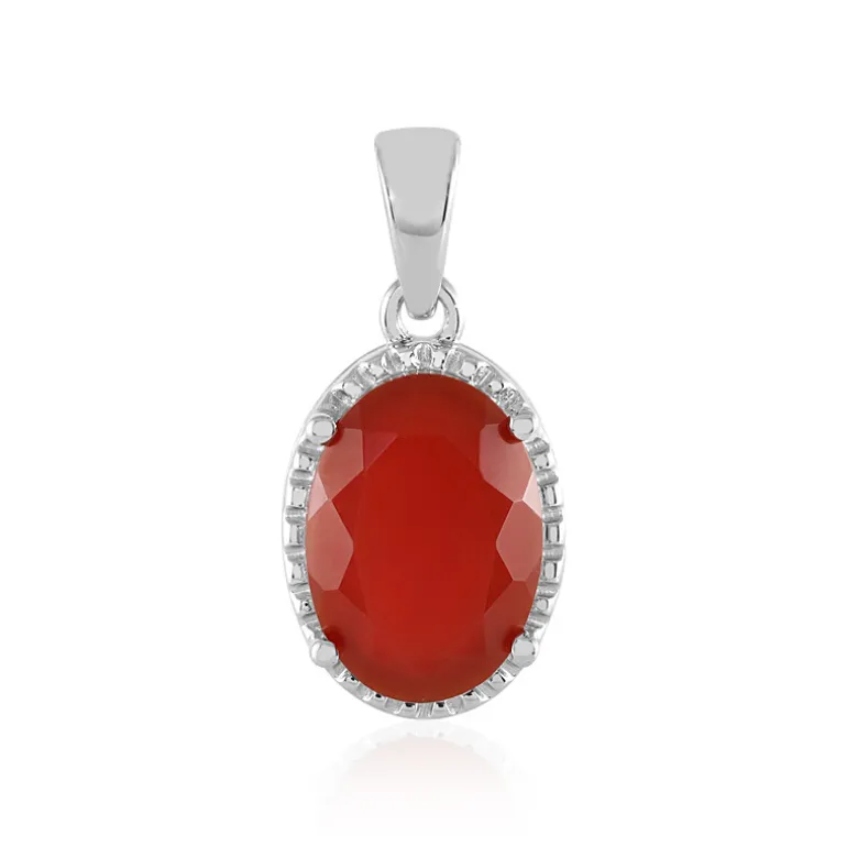 Entdecken Sie die Anziehungskraft des Ostens mit diesem bezaubernden Anhänger aus rotem Chalcedon. Mit einem ovalen Edelstein von 3,907 Karat, gefasst in glänzendem, platiniertem 925er Sterling Silber, strahlt dieses Schmuckstück Raffinesse aus. Sein tiefroter Farbton und seine feine Verarbeitung machen ihn zu einer idealen Wahl, um sowohl der Alltags- als auch der Abendgarderobe einen Hauch von Farbe zu verleihen. Dieser Anhänger ist eine vielseitige und geschätzte Ergänzung für jede Schmucksammlung.