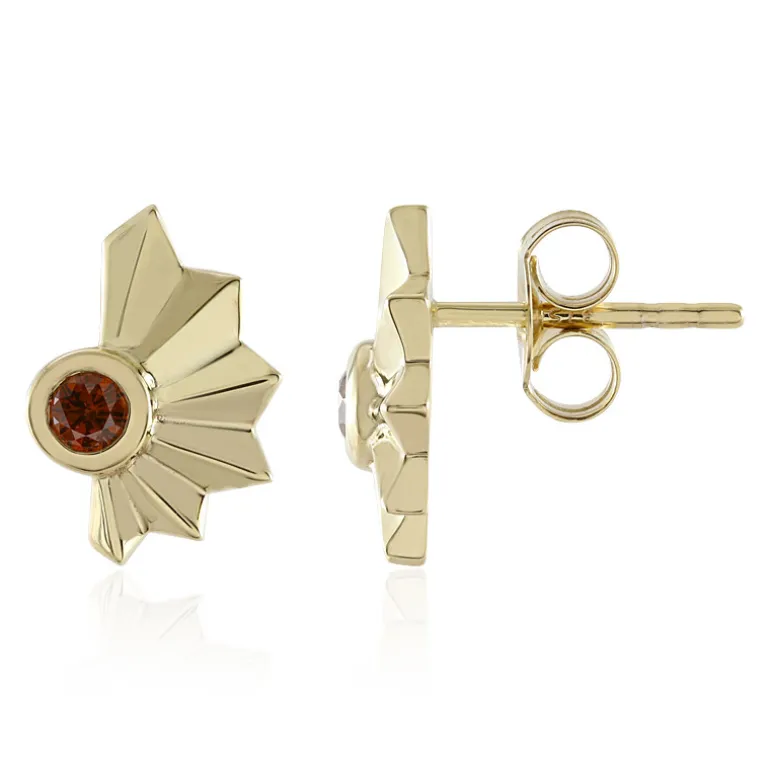 Schmücken Sie Ihre Ohren mit dem strahlenden Charme dieser Ohrringe aus 9 Karat Gelbgold, in deren Mitte sich ein roter Brillant von 0,198 Karat befindet. Die Sterne leuchten in einem kühnen Design und sind perfekt, um jedes Outfit aufzuwerten. Diese Schätze werden bei Abendveranstaltungen glänzen oder Ihrem Tageslook einen Hauch von Glamour verleihen. Ihre einzigartige, modische Sternform, gepaart mit der zeitlosen Eleganz roter Diamanten, macht sie zu einem vielseitigen Accessoire für jeden Schmuckliebhaber.