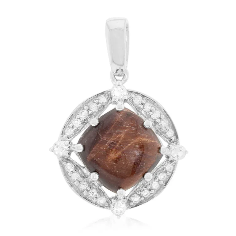 Entdecken Sie die Mystik des mexikanischen roten Tigerauges mit diesem bezaubernden Anhänger aus 925er Sterlingsilber. Mit einem 6,58ct antiken Kissen-Cabochon als Mittelstein, umrahmt von funkelnden weißen Topas-Akzenten von insgesamt 0,342ct, strahlt dieses Stück Vintage-Charme aus. Seine Größe von 32×22 mm macht ihn zu einem idealen Accessoire, das Ihrer Garderobe einen Hauch von Raffinesse verleiht. Kombinieren Sie ihn mit einer klassischen weißen Bluse für den Tag oder einem kleinen schwarzen Kleid für einen eleganten Abend.