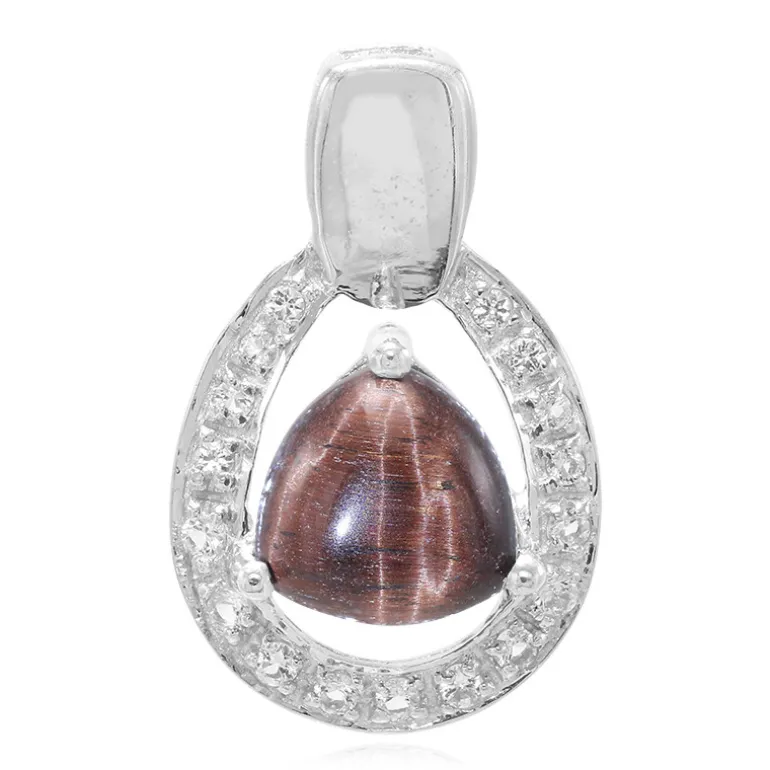 Mexikanisches rotes Tigerauge & Weißer Topas Silberanhänger, 3,25 ct