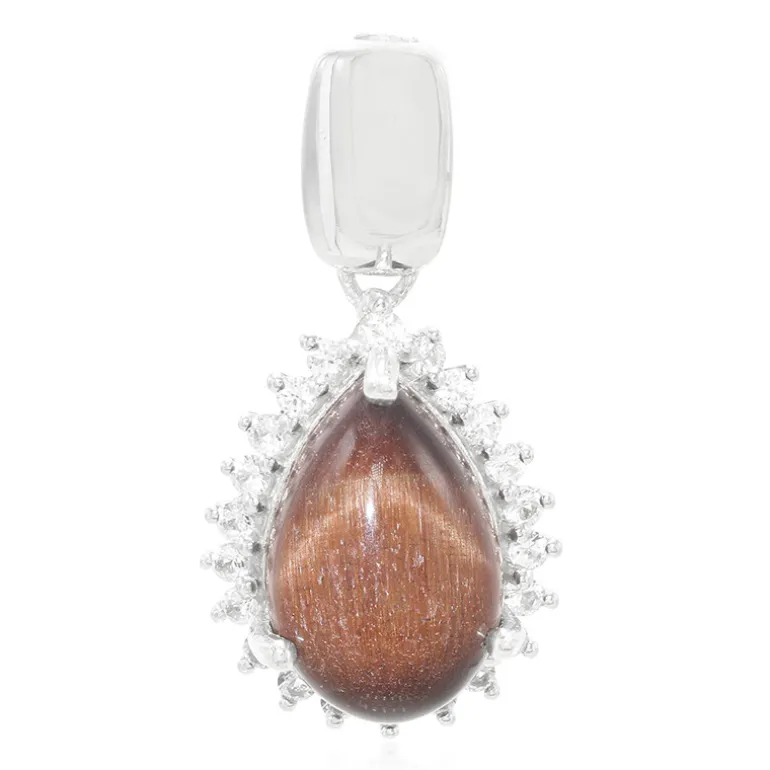 Dieser atemberaubende Anhänger besteht aus einem 6,96 Karat schweren roten Tigerauge-Cabochon aus Mexiko, der elegant von 22 weißen Topasen aus Brasilien eingerahmt wird. Gefertigt aus 925er Sterlingsilber bietet dieses Schmuckstück eine Mischung aus exotischem Charme und zeitloser Eleganz. Er ist perfekt, um jedes Outfit aufzuwerten, und passt sowohl zur Abendgarderobe als auch zu legeren Ensembles und verleiht ihnen einen Hauch von Raffinesse und Mystik.