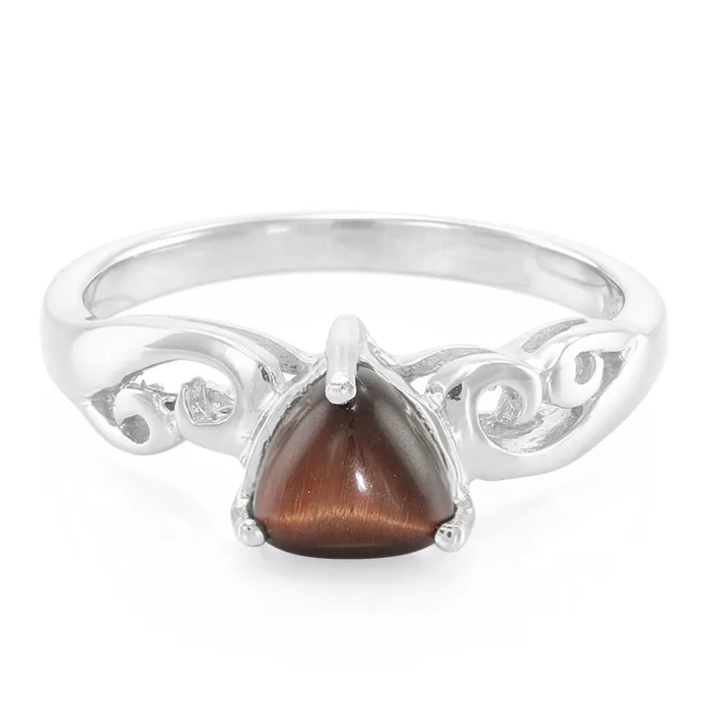 Entdecken Sie die Faszination dieses mexikanischen Tigerauge-Rings mit einem faszinierenden 1,02 Karat großen Trilliant-Cabochon, perfekt gefasst in poliertem 925er Sterlingsilber. Der 6 mm große Edelstein strahlt mit seinen tiefen Farbtönen Wärme aus, die durch das kunstvolle, 26 x 20 mm große Rankenwerk des Rings hervorgehoben wird. Ein vielseitiges Schmuckstück, ideal, um Ihrer Alltagskleidung einen Hauch von Raffinesse zu verleihen oder besondere Anlässe mit seinem einzigartigen Charme zu bereichern.