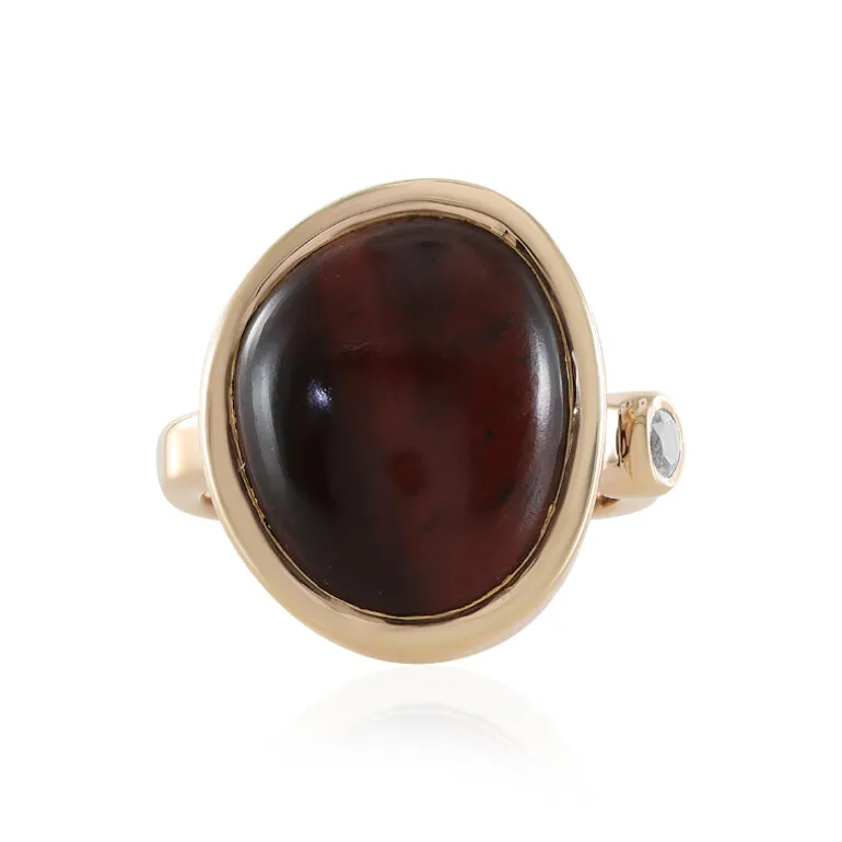 Lassen Sie sich von der Wärme dieses atemberaubenden Rings aus rosévergoldetem 925er Sterlingsilber verzaubern, der einen Cabochon aus rotem mexikanischem Tigerauge von 8,515 Karat mit seinen charakteristischen Bändern aus Seidenglanz enthält. Akzentuiert durch einen zierlichen 0,09ct weißen Topas aus Brasilien, strahlt dieses Stück Raffinesse aus. Dieser schicke Ring eignet sich perfekt, um Ihrer Alltagskleidung einen Hauch von Eleganz zu verleihen oder Ihre Abendgarderobe zu akzentuieren, und verspricht eine vielseitige Ergänzung Ihrer Sammlung zu werden.