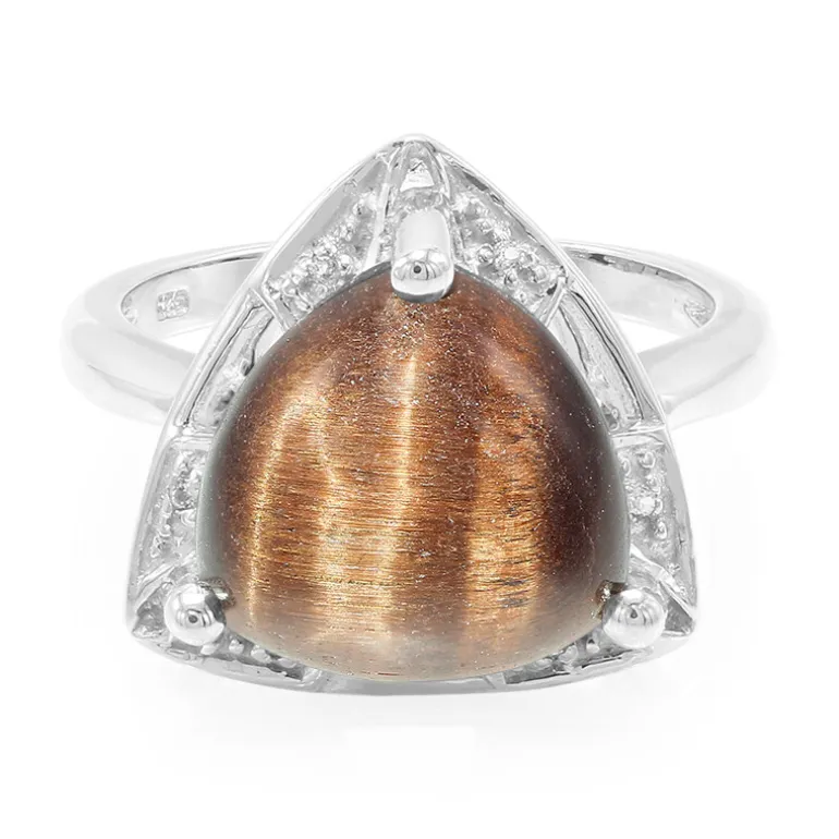 Entdecken Sie die Faszination des mexikanischen Tigerauges mit diesem atemberaubenden Ring aus 925er Sterling Silber. Mit einem faszinierenden 5,31 Karat großen Edelstein im Cabochon-Schliff, umhüllt von funkelnden weißen Topas-Akzenten, strahlt dieses Stück eine erdige Eleganz aus. Perfekt zu Ihrer stilvollen Abendgarderobe oder zu einem legeren Tageslook, sein zeitgenössisches Design ist ein kühnes Statement für jeden Anlass.