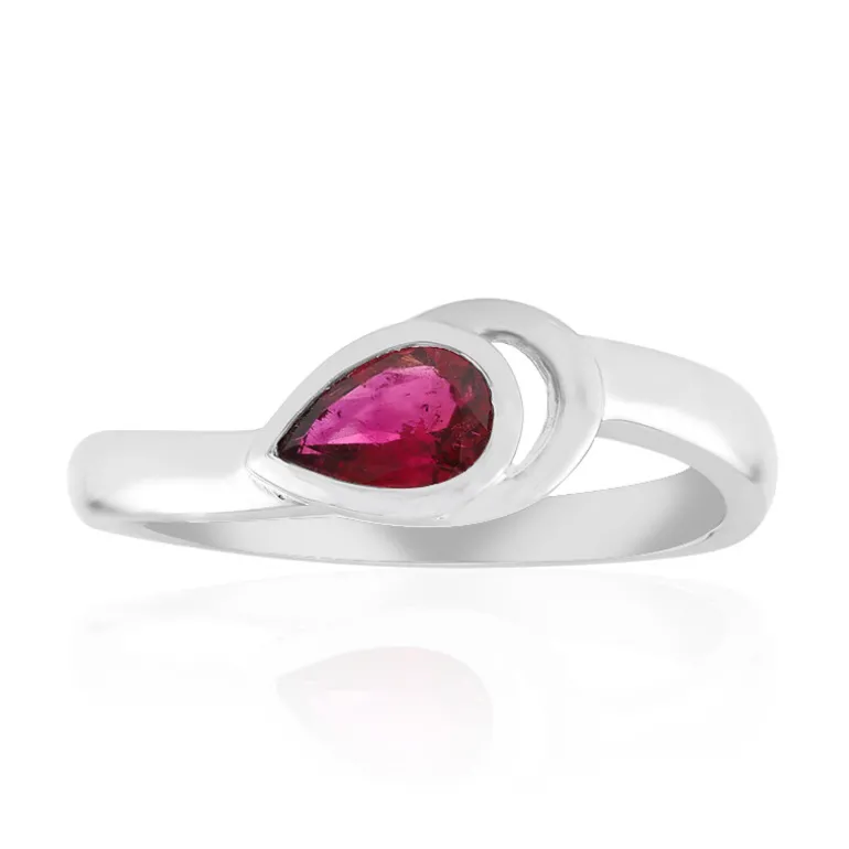 Entdecken Sie die lebendige Anziehungskraft dieses brasilianischen Rubellit-Rings mit einem auffälligen 0,358-karätigen tropfenförmigen Edelstein in einem eleganten Band aus 925er Sterlingsilber mit einer glänzenden platinierten Oberfläche. Die sich verjüngende Silhouette des Rings umschließt den Finger und schafft eine perfekte Balance zwischen Eleganz und moderner Raffinesse. Dieser Ring ist ein außergewöhnliches Schmuckstück für den Abend oder ein exquisites Geschenk für einen besonderen Menschen. Er strahlt in einem tiefen Pink, das die Aufmerksamkeit auf subtile Weise auf sich zieht.
