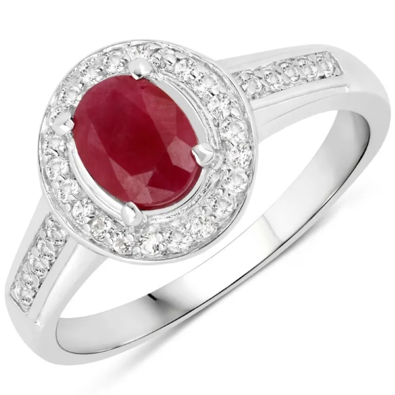 Entdecken Sie die Faszination unseres schicken Thai-Rubinrings mit einem prächtigen Mittelstein von 0,765 Karat im Ovalschliff, der in 925er Sterlingsilber gefasst ist. Das tiefe Purpurrot des Rubins wird durch den Schimmer von 32 indischen Weißtopasen mit einem Gesamtgewicht von 0,234 ct perfekt ergänzt und verleiht dem Design einen schillernden Halo-Effekt. Mit einem Gesamtgewicht von 0,999 ct verbindet dieser 22×20 mm große Ring zeitlose Eleganz mit moderner Raffinesse und ist damit ein ideales Accessoire für legere Anlässe und formelle Veranstaltungen. Kombinieren Sie diesen Ring mit Ihren Lieblingsoutfits, um ein unvergleichlich elegantes Statement zu setzen.