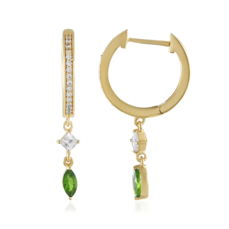 Entdecken Sie die Eleganz dieser atemberaubenden Ohrringe mit russischem Diopsid und kambodschanischen Zirkonen. Die Ohrringe sind aus vergoldetem 925er Sterlingsilber gefertigt. Der Diopsid im Marquiseschliff und die Zirkone im Prinzessschliff verleihen ihnen eine raffinierte Note. Perfekt für den Abend oder besondere Anlässe: Kombinieren Sie diese Ohrringe mit einem schicken Kleid oder einem maßgeschneiderten Anzug für einen raffinierten Look.
