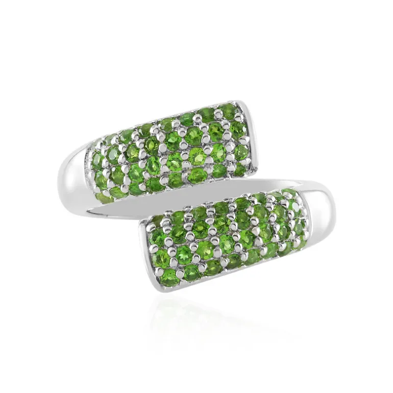 Zeigen Sie Ihre Liebe zu einzigartigen Edelsteinen mit diesem atemberaubenden Ring, der 64 russische Diopside im Rundschliff mit insgesamt 1,025 Karat enthält. Das Schmuckstück aus hochwertigem platiniertem 925er Sterlingsilber wiegt etwa 3,71 Gramm und verspricht sowohl Glanz als auch Haltbarkeit. Der auffallend grüne Farbton macht ihn zu einem vielseitigen Accessoire, das sowohl im Alltag als auch in der Abendgarderobe für einen farblichen Akzent sorgt. Ein Schatz für Edelsteinliebhaber und eine schillernde Ergänzung für jede Sammlung.