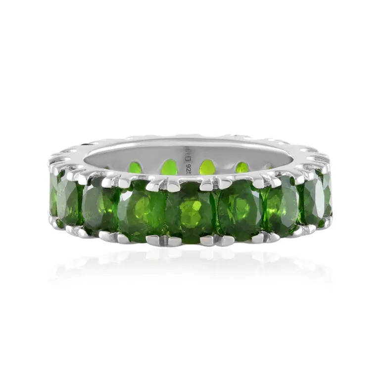 Entdecken Sie die Eleganz dieses atemberaubenden Silberrings mit russischen Diopsiden. Er ist aus 925er Sterlingsilber gefertigt und für dauerhaften Glanz plattiert. Er verfügt über 16 Diopside im Ovalschliff mit einem Gesamtgewicht von 5,134 Karat. Dieser Ring ist ideal für jeden Anlass und verleiht der Abendgarderobe eine lebendige Note. Er lässt sich aber auch perfekt mit legeren Outfits kombinieren und sorgt für einen schicken Look. Erhältlich in den Größen 17 bis 20, ist er eine vielseitige Ergänzung Ihrer Schmucksammlung.