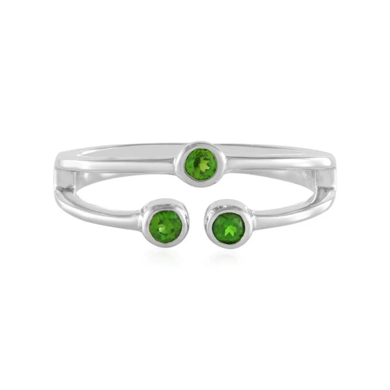 Umarmen Sie die Eleganz mit diesem exquisiten russischen Diopsid-Silberring. Mit drei Diopsiden im Rundschliff von insgesamt 0,218 ct schimmert jeder Stein in einem bezaubernden Grünton. Dieser Ring aus 925er Sterling Silber mit Platin-Finish ist sowohl für legere als auch für formelle Anlässe geeignet. Kombinieren Sie ihn mit Abendgarderobe für einen Hauch von Raffinesse oder setzen Sie einen farbigen Akzent bei Alltagslooks.