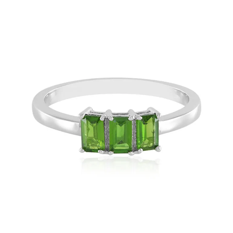 Entdecken Sie den verführerischen Charme unseres Chic Russian Diopside Rings. Dieses Schmuckstück mit drei Edelsteinen im Achteck-Schliff mit einem Gesamtgewicht von 0,687 ct ist in hochwertiges 925er Sterlingsilber mit einer luxuriösen Platinbeschichtung gefasst. Die leuchtenden Grüntöne der Diopsid-Steine, die aus den Weiten Russlands stammen, ziehen die Blicke auf sich. Dieser Ring verkörpert eine moderne Eleganz, die jedes Outfit aufwertet und ihn zum perfekten Begleiter für den Alltag oder besondere Anlässe macht. Kombinieren Sie ihn mit einer frischen weißen Bluse und einer maßgeschneiderten Hose für ein raffiniertes Ensemble für den Arbeitstag oder mit einem Abendkleid, um einen Spritzer Farbe und Glanz in Ihr Nachtleben zu bringen.