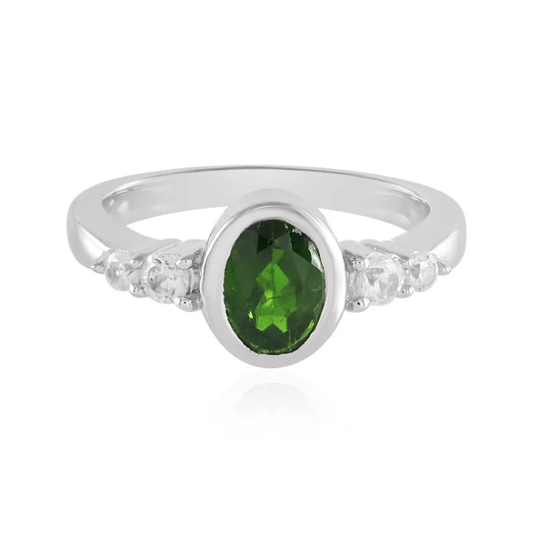 Lebendiger russischer Diopsid & Zirkon Platin-Plattierter Silber Ring