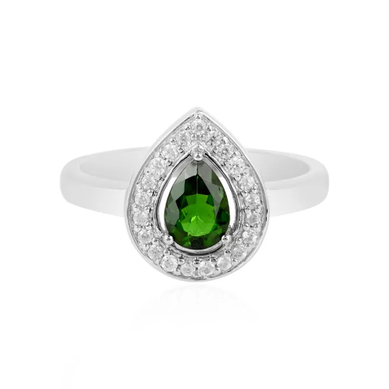 Entdecken Sie die grüne Anziehungskraft dieses tropfenförmigen russischen Diopsids, der majestätisch in platiniertes Sterlingsilber gefasst ist. Dieser exquisite Ring ist mit 21 funkelnden Zirkonen aus Kambodscha besetzt, die zusammen ein Edelsteingewicht von 0,927 ct ergeben. Die schimmernden Grüntöne im Kontrast zu dem leuchtenden Zirkon-Halo sind ein fesselndes Ensemble, das jedem Outfit einen Hauch von Eleganz verleiht. Ideal für besondere Anlässe oder den Alltag – ein zeitloses Stück für die Sammlung eines jeden Schmuckliebhabers.