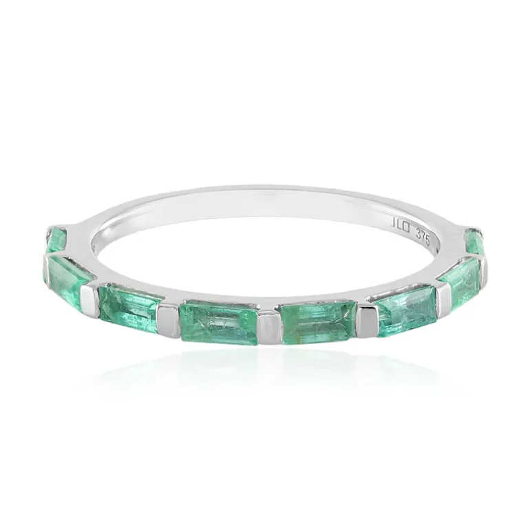 Tauchen Sie ein in die Pracht des russischen Erbes mit diesem auffälligen Ring aus 375er Weißgold, der eine Reihe von 0,727 Karat Smaragd-Baguetten mit ihrem charakteristischen grünen Schimmer präsentiert. Jeder Stein ist sorgfältig gefasst, so dass er sich nahtlos um das Band legt. Dieser Ring eignet sich perfekt für einen Hauch von Eleganz im Alltag oder für besondere Anlässe und passt sowohl zur Tages- als auch zur Abendgarderobe.