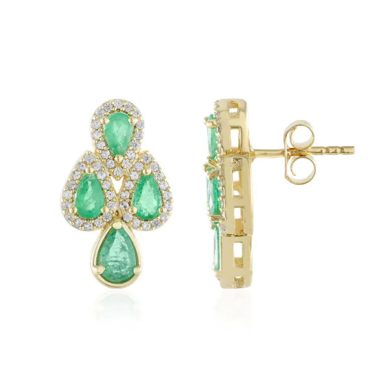 Erleben Sie Eleganz mit diesen atemberaubenden Ohrringen mit russischen Smaragden in einem anmutigen Tropfen-Design. Die mit kambodschanischen Zirkonen besetzten Edelsteine sind in vergoldetes 925er Sterlingsilber gefasst. Diese Ohrringe eignen sich perfekt für einen besonderen Abend und verleihen jedem Outfit Raffinesse. Sie sind ideal für elegante Anlässe oder einen Hauch von Glamour im Alltag.