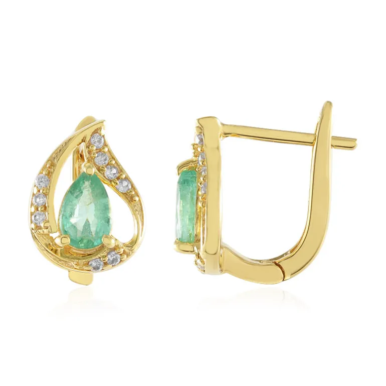 Tauchen Sie ein in die Eleganz dieser exquisiten Ohrringe mit russischen Smaragden, die in einer vergoldeten Sterlingsilberfassung gefasst sind. Die bezaubernden Edelsteine im Birnenschliff werden von kambodschanischen Zirkonen akzentuiert, die ihnen einen Hauch von Brillanz verleihen. Diese Ohrringe eignen sich sowohl für den Alltag als auch für besondere Anlässe. Sie harmonieren wunderbar mit einem schicken Cocktailkleid oder einem raffinierten Abendkleid und lassen Sie mühelos erstrahlen.