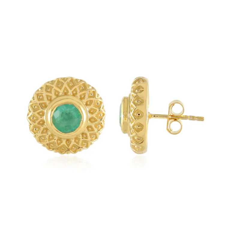Entdecken Sie die Faszination russischer Smaragde mit diesen bezaubernden Ohrringen. Jedes Stück trägt einen Smaragd im Rundschliff, der in einer luxuriös strukturierten Fassung aus vergoldetem Sterlingsilber eingebettet ist und zeitlose Eleganz ausstrahlt. Mit einem Gesamtgewicht von beeindruckenden 1,411 Karat und einer komfortablen Größe von 15 mm sind diese Ohrringe perfekt geeignet, um sowohl der Tages- als auch der Abendgarderobe einen raffinierten Touch zu verleihen. Ihr satter grüner Farbton macht sie zu einem vielseitigen Accessoire für jedes Outfit, das Anmut und Raffinesse verkörpert.