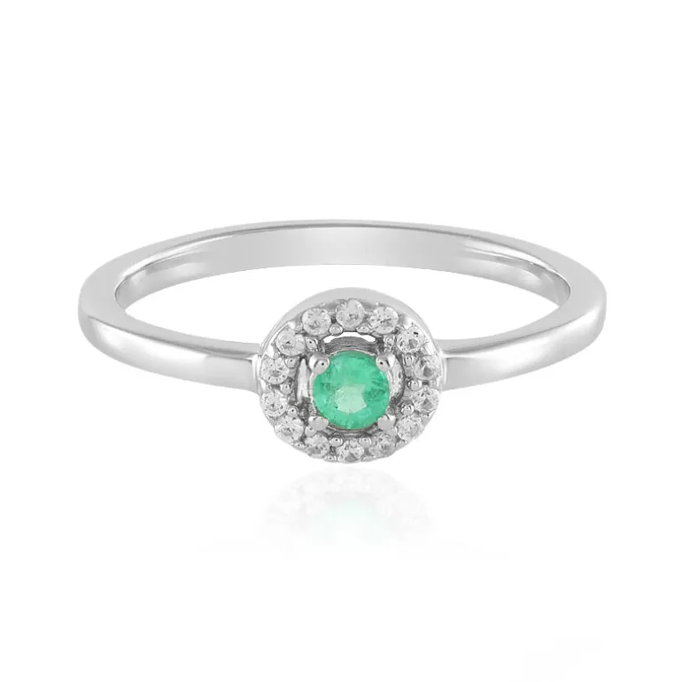 Veredelter russischer Smaragd & Zirkon Silberring, 0,22ct