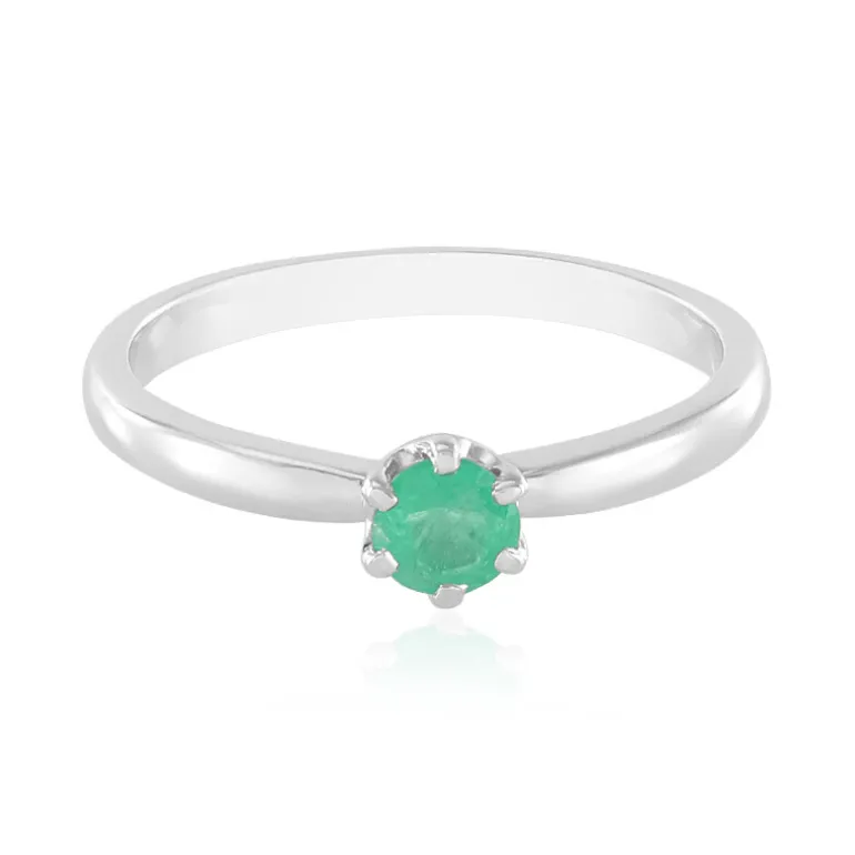Dieser bezaubernde Ring mit einem Hauch von Opulenz zeigt einen echten russischen Smaragd, der majestätisch auf poliertem, platiniertem 925er Sterlingsilber sitzt. Der 0,214 Karat große Smaragd im Rundschliff strahlt aus seiner sicheren Fassung und verströmt ein lebhaftes, blattartiges Grün, das bei jeder Bewegung das Licht einfängt. Dieses Schmuckstück ist ein Erbstück und zeugt von zeitloser Eleganz. Dieser Ring eignet sich sowohl für einen legeren Brunch als auch für elegante Abende und ist eine vielseitige Ergänzung Ihrer Sammlung.