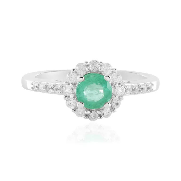 Entdecken Sie die Faszination dieses platinierten Rings aus 925er Sterlingsilber, in dessen Zentrum ein atemberaubender russischer Smaragd von 0,361 Karat steht. Umgeben von einem Halo aus kambodschanischen Zirkonen von insgesamt 0,239 Karat, strahlt dieses Schmuckstück klassische Eleganz aus. Das raffinierte Design, das sich durch den leuchtend grünen Farbton des zentralen Smaragds auszeichnet, macht ihn zu einem perfekten Accessoire für formelle und legere Anlässe. Es ist ein wunderbares Geschenk für alle, die die Schönheit einzigartiger Edelsteine zu schätzen wissen.