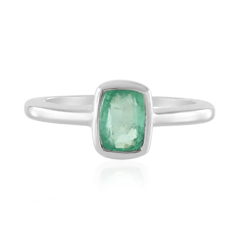 Dieser anmutige Ring zeigt einen wunderschönen russischen Smaragd, der fachmännisch in eine antike Form geschliffen und in platiniertes 925er Sterlingsilber gefasst ist. Mit einem Gewicht von 0,844 Karat ist der leuchtende Farbton des Smaragds perfekt, um jedem Outfit einen Hauch von Eleganz zu verleihen. Dieser Ring eignet sich sowohl für den Alltag als auch für besondere Anlässe und ist eine wertvolle Ergänzung zu Ihrer Schmucksammlung.